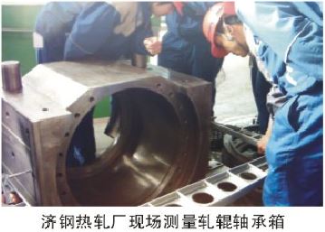 軋輥軸承箱是連接軋輥,并將軋輥放置于軋機牌坊的中間部件,其尺寸精度和形位誤差只有滿足設計要求,才能保證軋機的機械裝配關系正確。軋輥軸承箱與軋機牌坊配合通過安裝在軋輥軸承箱體外面的襯板來調整配合間隙,軋機工作過程中其磨損程度是不均勻的,通常邊部磨損嚴重而中間磨損很少;而用一般千分尺測量檢查時,由于尺架中部大圓弧的干涉,只能測量軸承箱的邊部尺寸,而中部尺寸測量不到,致使檢測結果失真。