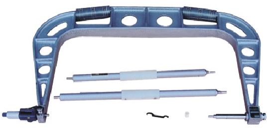 (2)測量范圍Smm–(S+100)mm千分尺:根據(jù)被測尺寸調整安裝25mm、50mm測量套在千分尺弓架體的位置,選用相應的校對桿校對零位。