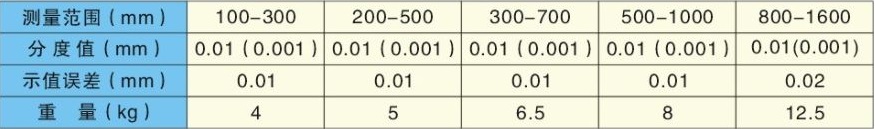 鞍式輥形測(cè)量?jī)x的規(guī)格型號(hào)如下所示:
